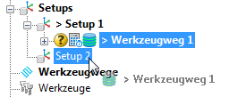 Außerdem werden, wenn Sie ein aktives Setup haben, alle neu erstellten Werkzeugwege automatisch am Ende des aktiven Setups hinzugefügt.