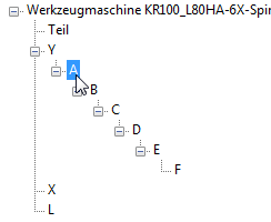 Wählen Sie zum Anzeigen der Befestigungspunkte einer Werkzeugmaschine den Namen der Werkzeugmaschine im Baum aus.