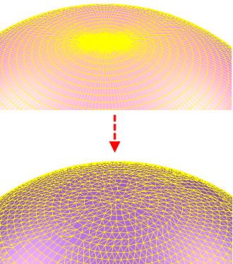 - Klicken Sie auf Ausführen, um die Anzahl der Dreiecke im Netz zu reduzieren. Das Dialogfeld bleibt geöffnet, und Sie können die Werte im Dialogfeld abändern, um die Anzahl der Dreiecke erneut zu reduzieren.
