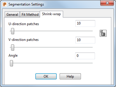 - Verwenden Sie den Schieber Flächenfelder in U-Richtung, oder geben Sie einen genauen Wert ein, um die Anzahl der Kontrollpunkte in U-Richtung festzulegen, die zur Erstellung der Flächenkurven im 2D-Raum verwendet werden.