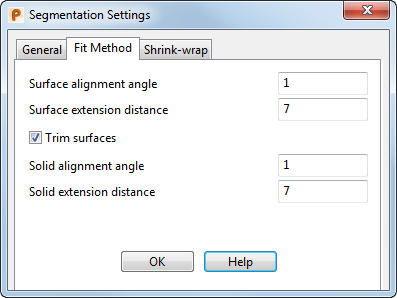 - Wählen Sie die Option Flächen trimmen aus, um bei der Segmentierung getrimmte Oberflächen zu erstellen.