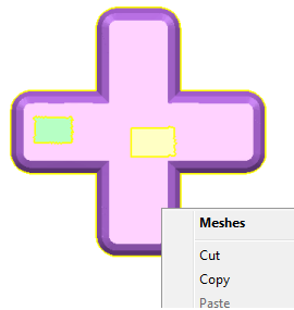 - Klicken Sie bei ausgewähltem Netz auf Netz-Werkzeuge-Registerkarte > Teilen-Gruppe > Farbe. Das Netz wird in drei getrennte, ausgewählte Netze aufgeteilt: