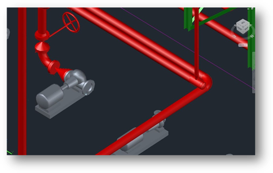 XRefs vereinfachen die Arbeit in großen Modellen erheblich. Hier konzentriert sich der Rohrleitungskonstrukteur auf die Rohrleitungen um eine Pumpe: