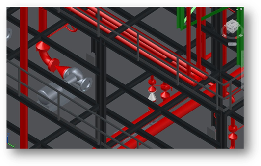 Indem die Stahlbauaspekte entfernt und einige der Rohrleitungslayer deaktiviert werden, wird die Ansicht übersichtlicher und Rohrleitungen können einfacher erstellt werden: