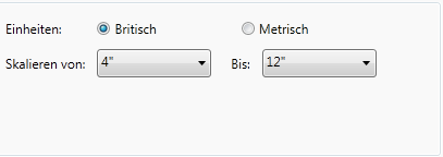 - Geben Sie unter Skalieren von einen ersten Größenbereich an. Beispiel: 4" bis 12".