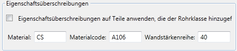 - Wählen Sie im Fenster Katalog Eigenschaftsüberschreibungen auf Teile anwenden, die der Rohrklasse hinzugefügt werden aus.