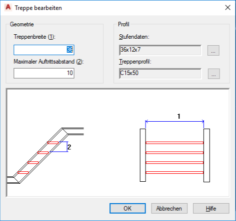 Dialogfeld Treppe bearbeiten