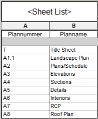 Revit blendet die Spalte Planreihenfolge in der Planliste aus.
