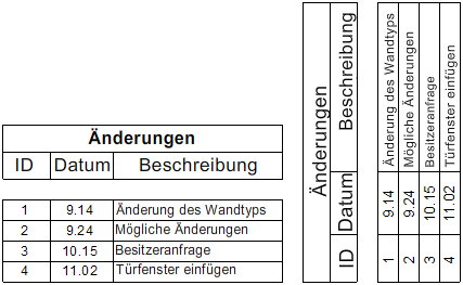 Eine horizontale (links) und eine gedrehte (rechts) Änderungsliste