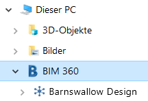 - Suchen Sie im Windows® Explorer nach einem Eintrag für Autodesk Docs. Vergrößern Sie die Ansicht, um Ihre Projekte zu sehen.