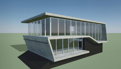Erstellen Sie mithilfe des Standardwerkzeugs für Wände geneigte Wände und Fassaden. Geneigte Wände können Basisbauteile für Elemente wie Türen, Fenster, Elektro-Objekte, profilierte Wände und mehr sein.