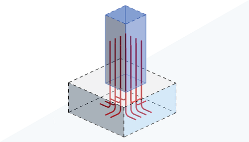 Sie können 3D-Biegeformen definieren, indem Sie die Haken an den Enden der Stäbe drehen, Bewehrungsstühle (Ständer) oder andere 3D-Stäbe modellieren und die vollständigen Fertigungsdaten in den Bauteillisten extrahieren.