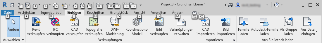 Keytips bieten eine Möglichkeit zum Zugriff auf den Menü-Browser, den Schnellzugriff-Werkzeugkasten und die Multifunktionsleiste über die Tastatur.