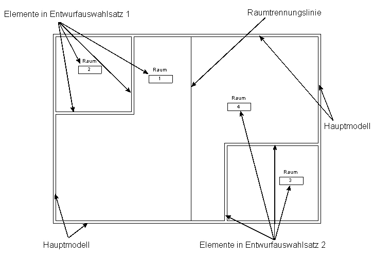 Wenn der Raum in jeder Entwurfsoption eine andere Form, Größe oder Position haben soll, oder sich die Raumeigenschaften unterscheiden sollen, fügen Sie den Raum jeder Entwurfsoption im Auswahlsatz hinzu. Dazu haben Sie folgende Möglichkeiten: