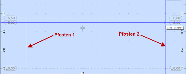 Um die einzelnen Pfosten zu zeichnen, klicken Sie auf den ersten und letzten entsprechenden Knoten auf der Strukturachse, die Sie zuvor definiert haben.