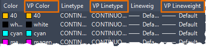 Layer property overrides are applied to the current layout viewport. When you double-click a layout viewport to make it current, extra columns are shown on the Layer Properties Manager.