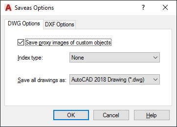DWG Options Tab (Saveas Options Dialog Box)