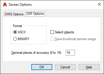Saveas Options Dialog Box (for DXF files)