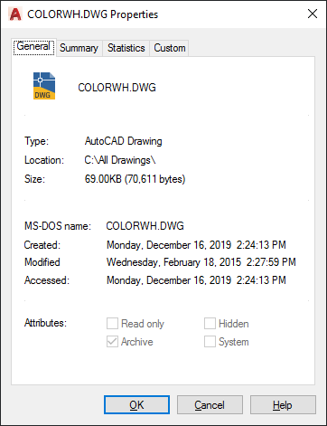 Displays read-only information about the drawing file, which is derived from the operating system.