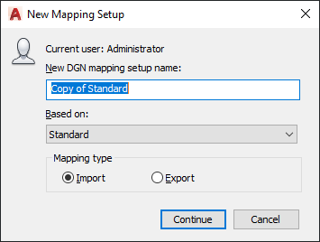 Opens the Modify DGN Mapping Setup dialog box. Depending on the mapping type selected (Import or Export), the appropriate import/export dialog box is displayed.