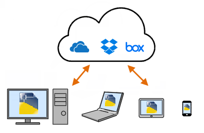 A sync client is a small background program that synchronizes the data you create on your computer with the data you store in your cloud account. The program is visible as an icon in the Windows system tray, which is in the lower-right area of your screen. The icon also indicates status information.