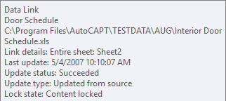 When a drawing containing a data extraction table is opened in AutoCAD LT, the tooltip text indicates the table contains extracted data. You cannot update the extracted data or change a data link, if one exists