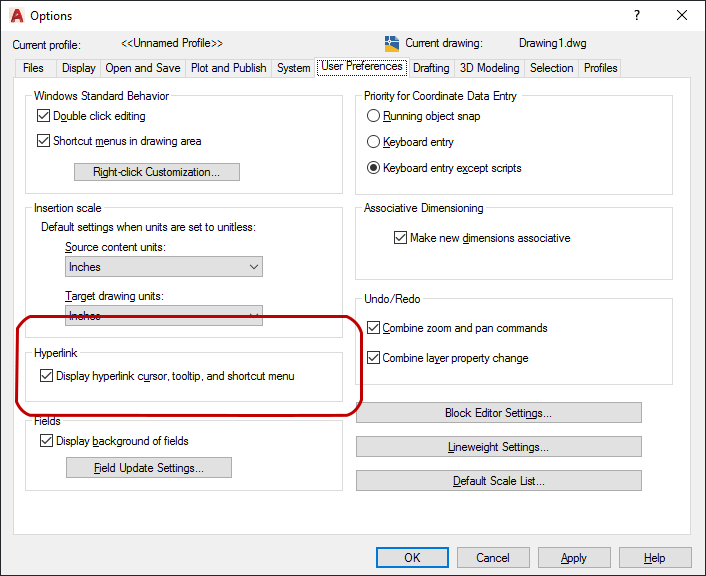 Enable the display of hyperlink information from the User Preferences tab of the Options dialog.