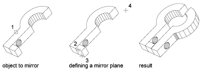 With MIRROR3D, you can mirror objects across a specified mirroring plane. The mirroring plane can be one of the following: