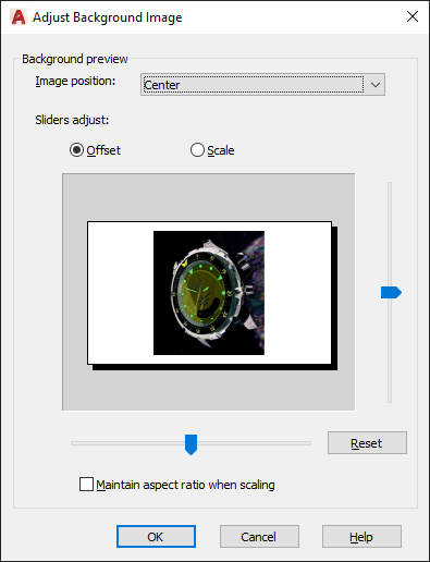 Controls options for the background image applied to a model space named view.