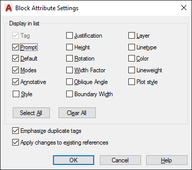 Controls the appearance of the attribute list in the Block Attribute Manager.