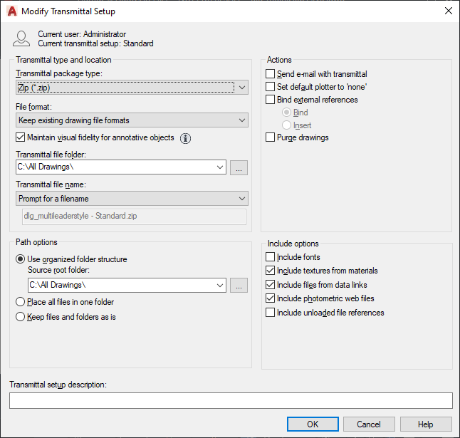 ETRANSMIT (Command) Find: Transmittal Setups > Modify