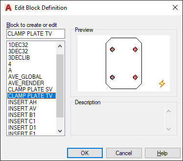 Displays the description of the selected block definition.