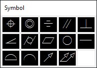 The symbol is inserted into the Sym text box in the Geometric Tolerance dialog box. The following table describes the symbols.