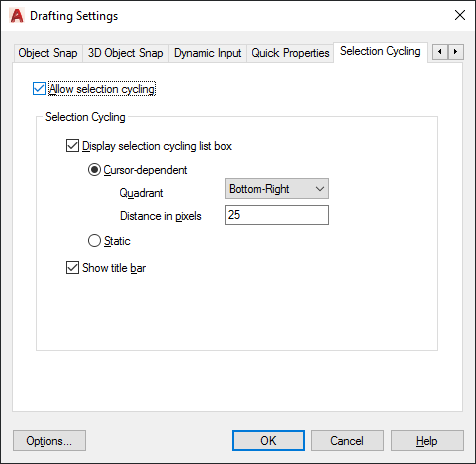 Selection Cycling Tab (Drafting Settings Dialog Box)