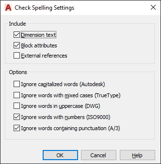Specifies specific text options that will be checked in your drawing.
