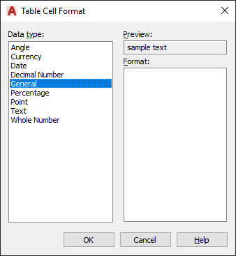 TABLESTYLE (Command) Find: Modify > General tab > Format: [...]