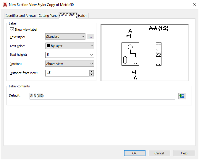 View Label Tab (Section View Style Manager)
