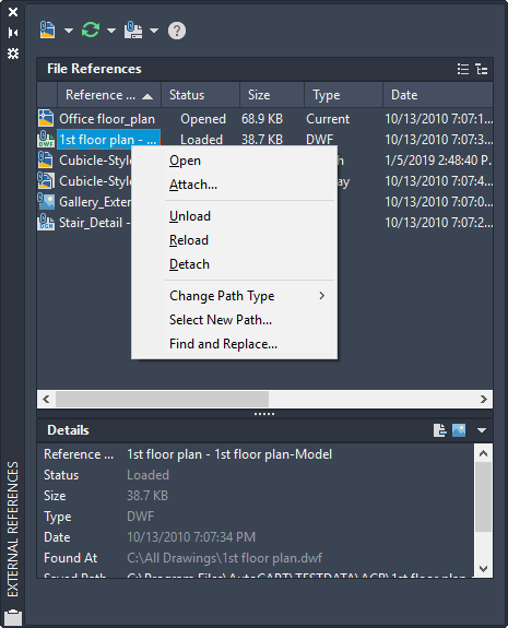 If the reference you select for editing has attached xrefs or block definitions, the reference and its nested references are displayed and available for selection in the Reference Edit dialog box. Nested references are displayed only if the object chosen for selection is part of a nested reference. Only one reference at a time can be selected for editing. If you are editing a reference that contains OLE objects, the OLE objects are displayed but cannot be selected for editing.