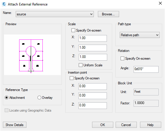 The xref data is highlighted with dashed lines when selected. The xref commands affect the corresponding labels in various ways. If you detach or bind the xref, the label is deleted and must be recreated.