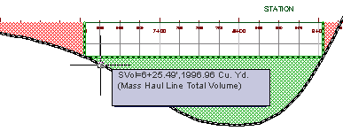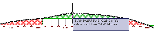 The cut volume above the balance line is entirely free haul. Notice that now there is a red, overhaul volume below the balance line. You will balance the fill volume in the following procedure.