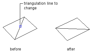 Edge swapping is used to change the direction of two triangle faces in the surface, to create a more accurate surface model. For example, edges can be swapped to match the triangle edges to ridges or swales.