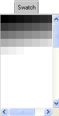 Displays the colors in the active palette. The swatch panel doesn't list the names of colors, but each color's name appear as a tooltip when the mouse is over the swatch.