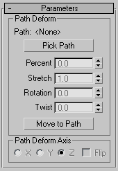 The PathDeform world-space modifier deforms an object based on a shape, spline or NURBS curve path. With the exceptions noted in the Interface section, this world-space modifier works the same as the object-space PathDeform modifier.