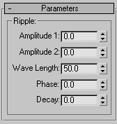 At this sub-object level, you can transform and animate the gizmo like any other object, altering the effect of the Ripple modifier. Translating the gizmo translates its center an equal distance. Rotating and scaling the gizmo takes place with respect to its center.