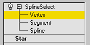 The Spline Select modifier passes a sub-object selection of shapes up the stack to subsequent modifiers. It provides much of the same set of selection functions available in the Edit Spline modifier. You can select vertices, segments, or splines, and you can change the selection from sub-object level to object level.