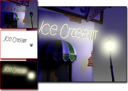 Main image: G-buffer used to apply a glow to lighting in a scene