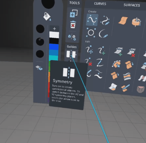 Pull the trigger to place the image on the symmetry plane. It is now unanchored and can be globally moved and scaled with all objects in the scene.