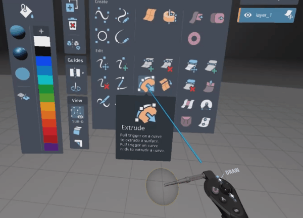 Pull the trigger and drag to create a surface.