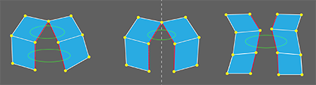 Extrude (Smart) - Selects edges along the boundary edge loop that are between corner vertices. Use this method to exclude edges attached to corner vertices so that sharp corners are not included in the extrusion.