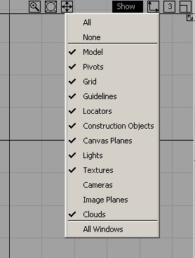 Show or hide different items (geometry, lights, grid, and so on) on a per-window basis.